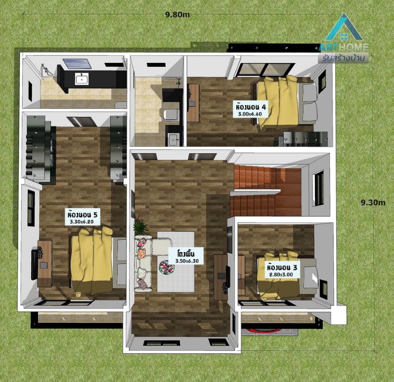 This splendid residence offers a friendly exterior and a homey yet casual ambiance that is perfect for everyday living. The internal layout utilizes a land size of 9.8 x 9.3 meters and yields a usable space of 190.0 sq, meters for two levels.