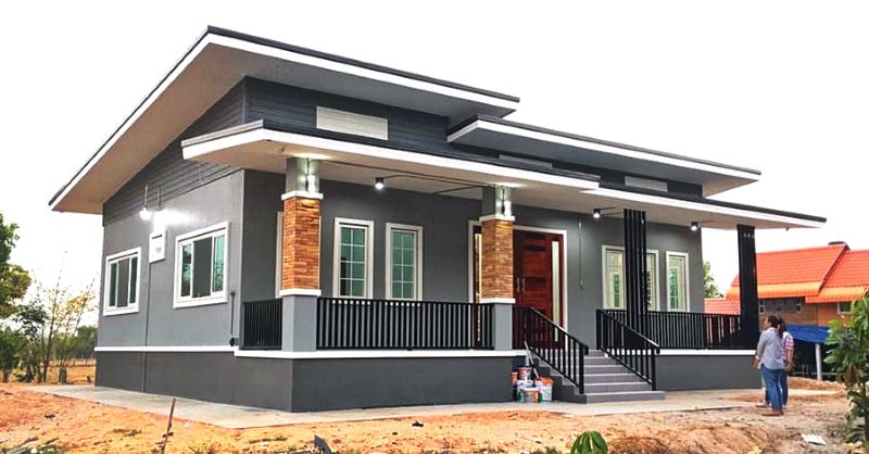 This trendy home design exemplifies a smart combination of a few classic building elements with the present twist. With a grey shade dominating the façade, the accent of white and brown showcases a great blend that generates a dynamic and striking character. Certainly, this is perfect for the present changing lifestyle.